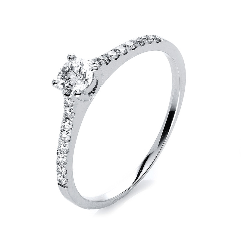 ring 18 kt WG, 1 diamond 0,24 ct, G-si, 16 diamonds 0,14 ct, G-si, width:53