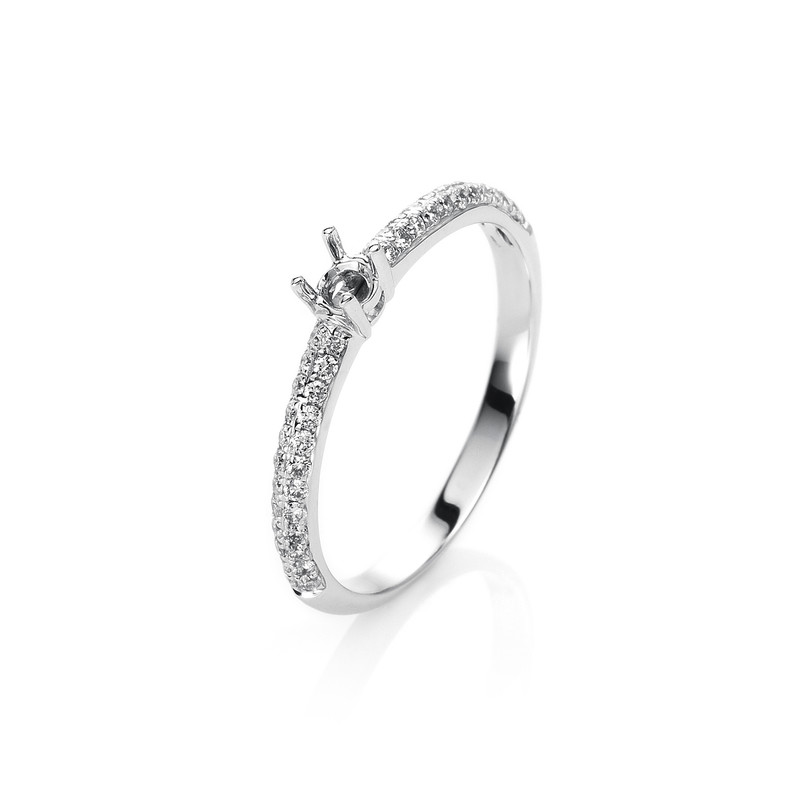 ring 18 kt WG, 48 diamonds 0,25 ct, G-si, mounting for 1x diamond 0,10 ct, width:53