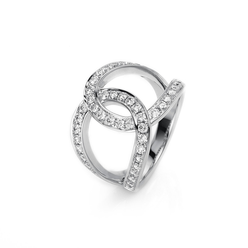 ring 18 kt WG, 46 diamonds 0,84 ct, G-vsi, width:53