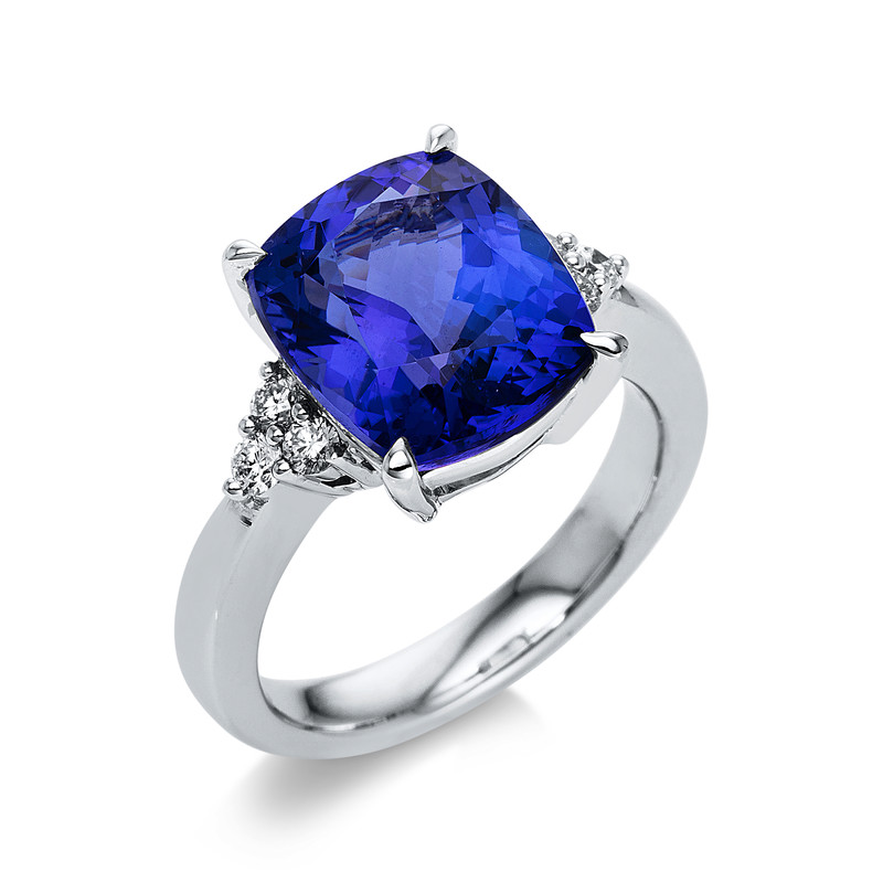 ring 18 kt WG, 6 diamonds 0,24 ct, G-si, 1 tanzanite 6,65 ct blue, h:12,2 mm, w:17,2 mm, width:54