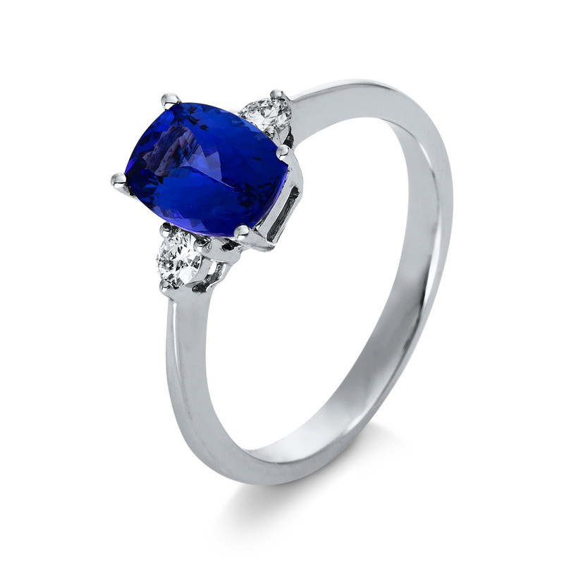 ring 18 kt WG, 2 diamonds 0,14 ct, G-vsi, 1 tanzanite 1,47 ct blue, width:54