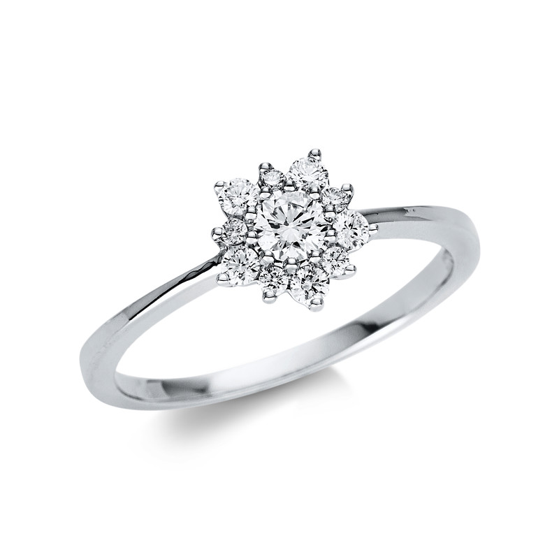 ring 18 kt WG, 1 diamond 0,17 ct, G-si, 10 diamonds 0,17 ct, G-si, width:54