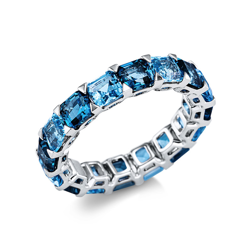 ring 18 kt WG, 8 topaz 3,10 ct Lond. blue, 8 topaz 3,20 ct blue, h:23,6 mm, w:4,2 mm, width:54