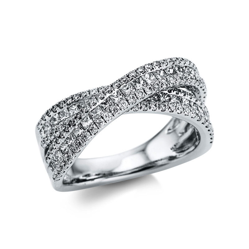 ring 18 kt WG, 42 princess 0,96 ct, G-si, 120 diamonds 0,62 ct, G-si, width:54