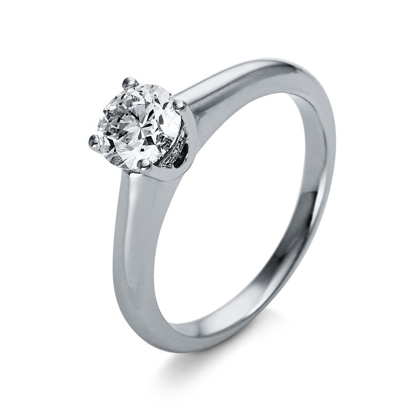 ring 18 kt WG+P950, 1 diamond 0,70 ct, G-si, 4 diamonds 0,05 ct, G-si, h:5,9 mm, w:5,9 mm, width:55