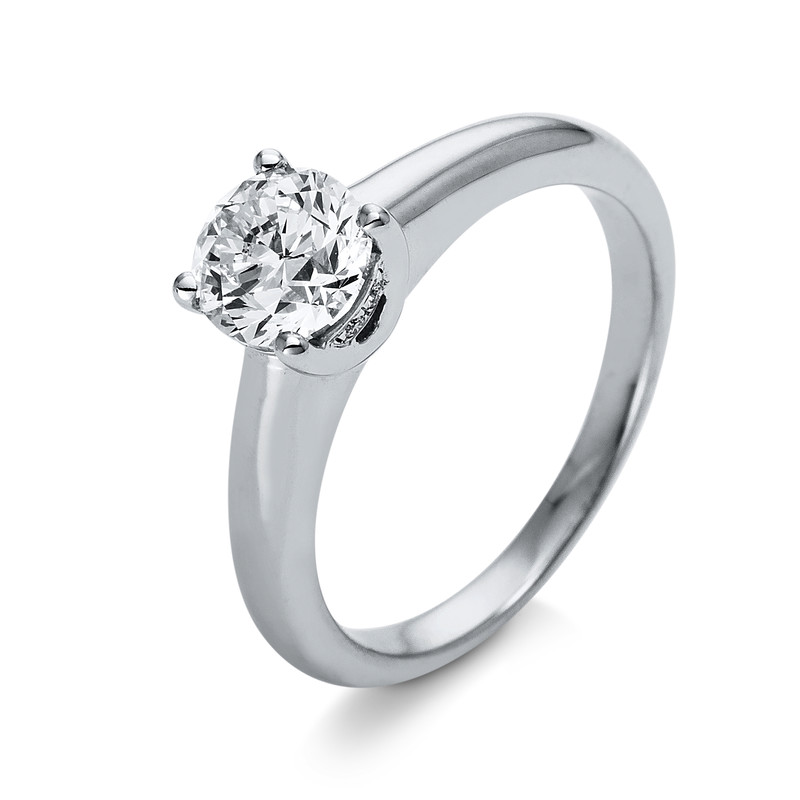 ring 18 kt WG+P950, 1 diamond 1,00 ct, G-si, 4 diamonds 0,03 ct, G-si, h:6,1 mm, w:6,1 mm, width:55