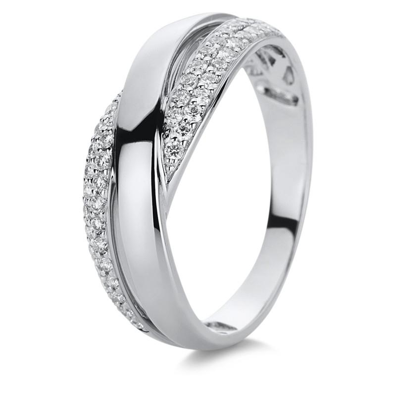ring 18 kt WG+RG, 46 diamonds 0,29 ct, H-si, w:7,0 mm, width:52
