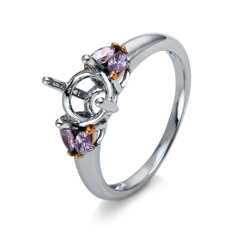 ring 18 kt WG+RG, 4 marquise 0,33 ct, pink, mounting for 1x diamond 1,00 ct, width:54