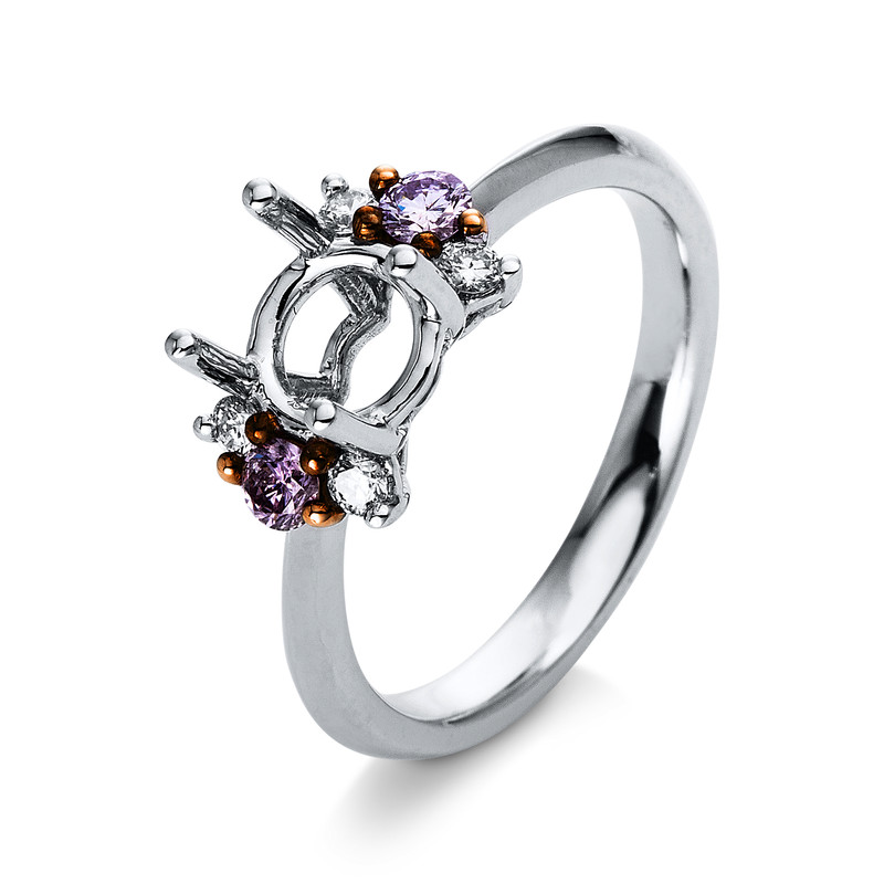 ring 18 kt WG+RG, 4 diamonds 0,12 ct, G-si, 2 diamonds 0,17 ct, pink, mounting for 1x diamond 1,00 ct, width:54