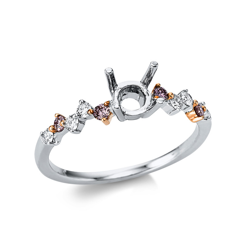 ring 18 kt WG+RG, 6 diamonds 0,14 ct, G-si, 4 diamonds 0,11 ct, pink, mounting for 1x diamond 0,50 ct, width:53
