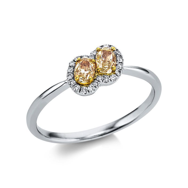 ring 18 kt WG+YG, 22 diamonds 0,08 ct, G-si, 2 oval 0,41 ct, yellow, width:53