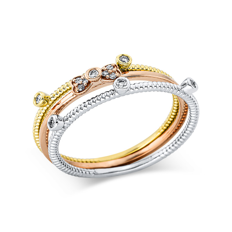 ring 18 kt WG+YG+RG, 6 diamonds 0,02 ct, G-si, 6 diamonds 0,05 ct, G-si, w:5,4 mm, width:54