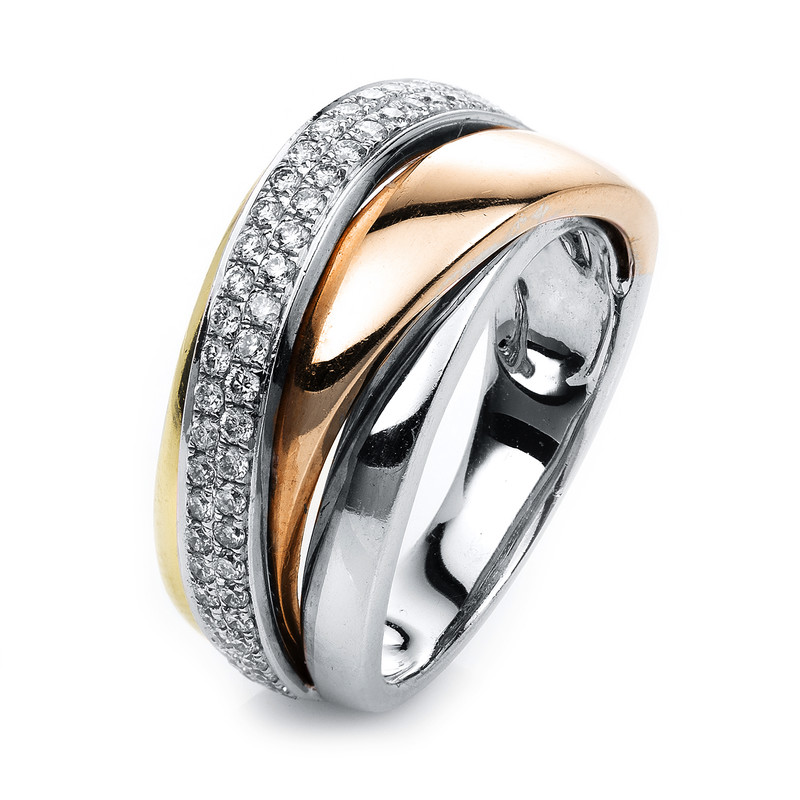 ring 18 kt WG+YG+RG, 64 diamonds 0,52 ct, G-vsi/si, width:53