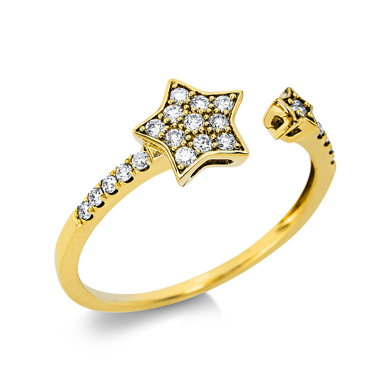 ring 18 kt YG "star", 22 diamonds 0,19 ct, G-si, width:55