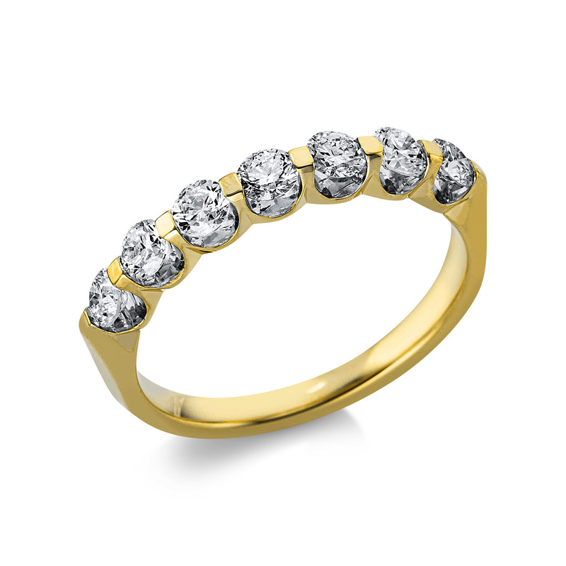 ring 18 kt YG, 7 diamonds 0,76 ct, G-si, w:3,1 mm, width:54