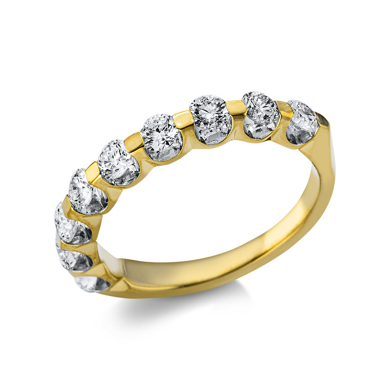 ring 18 kt YG, 9 diamonds 1,00 ct, G-si, w:3,3 mm, width:54