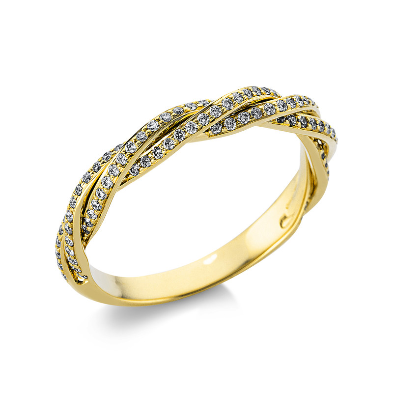 ring 18 kt YG, 101 diamonds 0,29 ct, G-si, w:3,2 mm, width:54