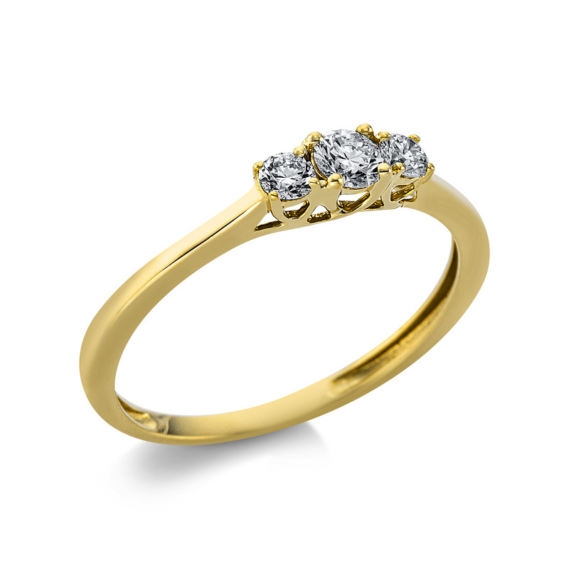 ring 18 kt YG, 1 diamond 0,14 ct, G-si, 2 diamonds 0,13 ct, G-si, width:54