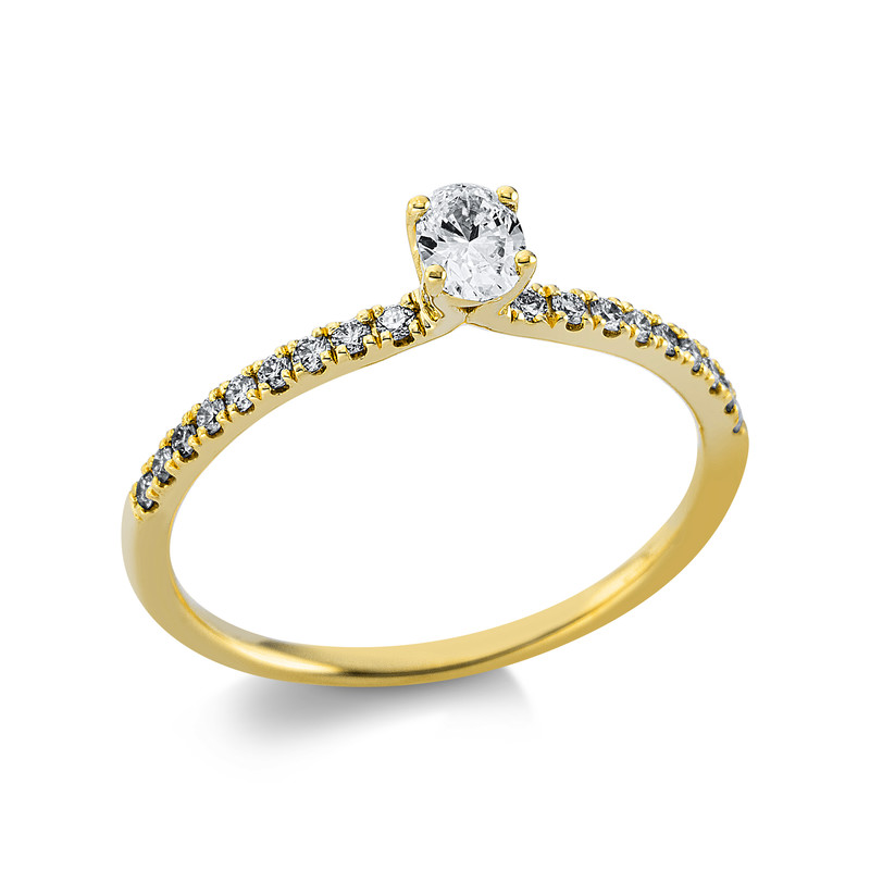 ring 18 kt YG, 1 oval 0,21 ct, G-si, 18 diamonds 0,15 ct, G-si, width:54