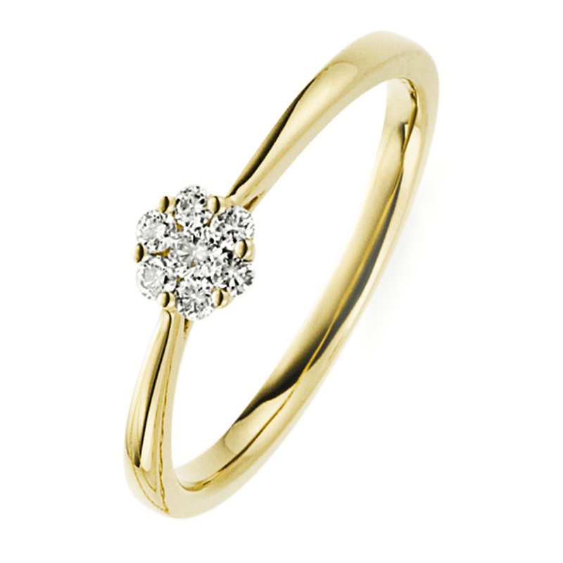 ring 18 kt YG, 7 diamonds 0,17 ct, G-si, w:5,3 mm, width:56
