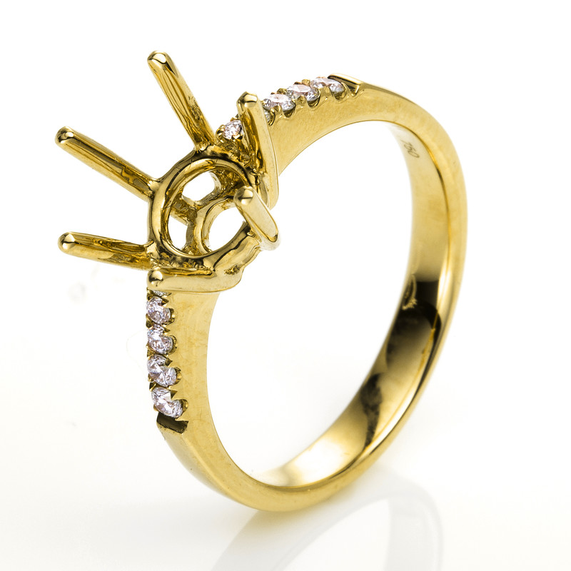 ring 18 kt YG, 10 diamonds 0,14 ct, G-si, mounting for 1x diamond 2,00 ct, width:54