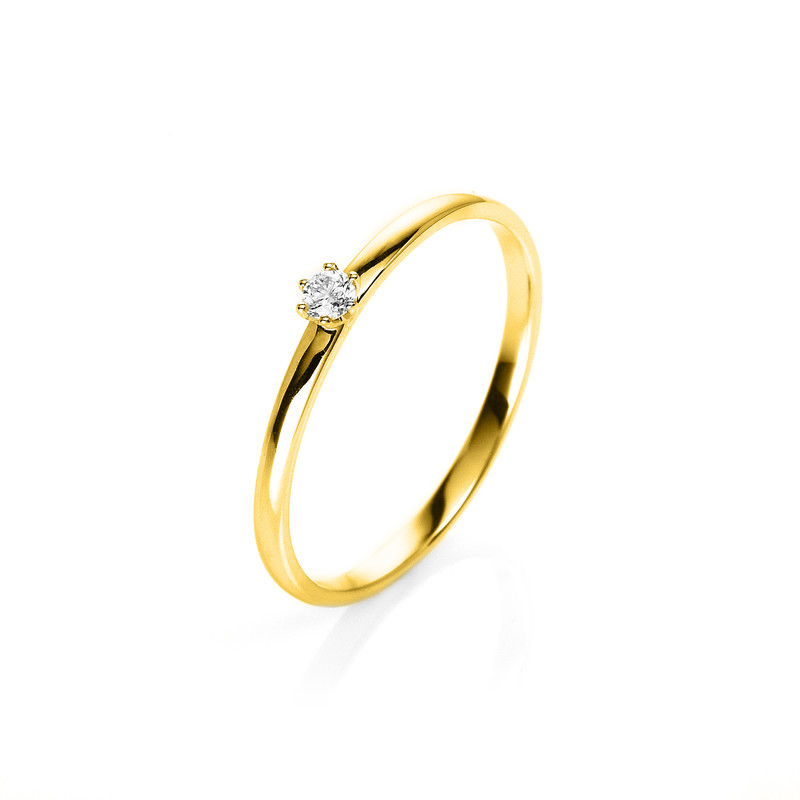 ring 18 kt YG, 1 diamond 0,05 ct, G-si, 1 diamond 0,05 ct, G-si, w:3,0 mm, width:57