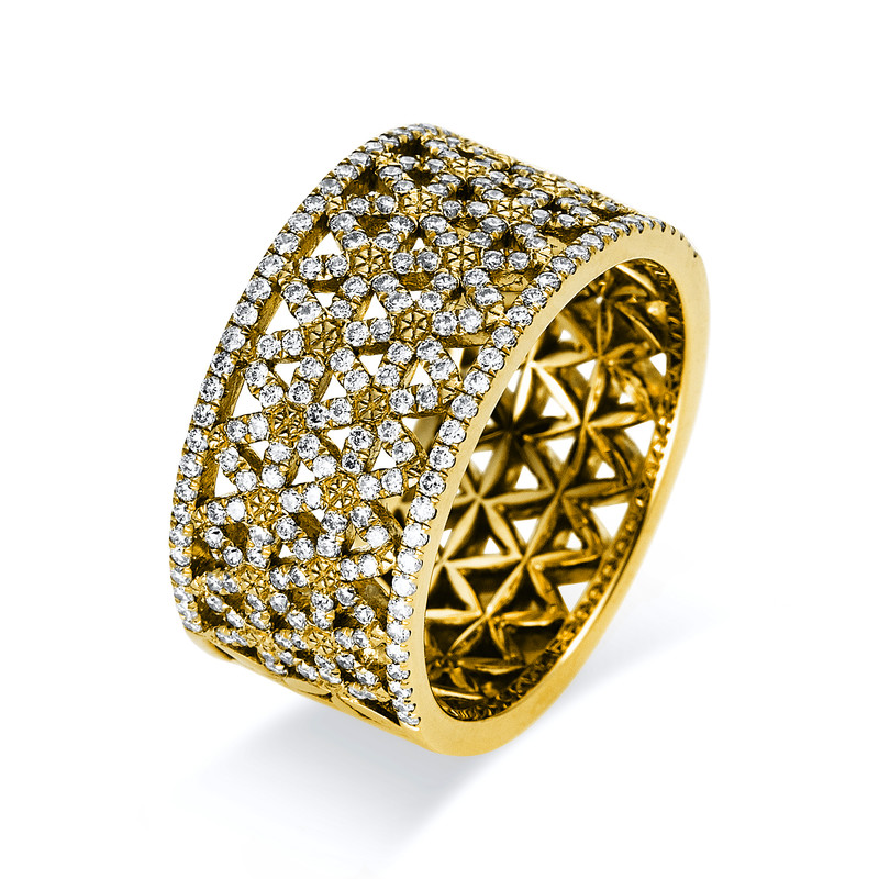 ring 18 kt YG, 228 diamonds 0,66 ct, G-si, w:9,7 mm, width:54