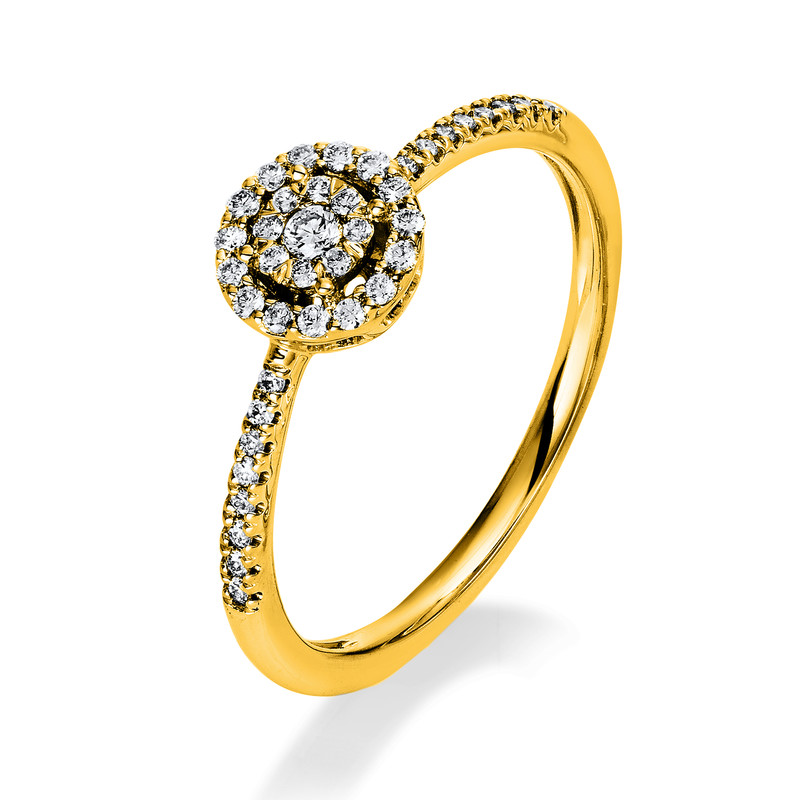 ring 18 kt YG, 40 diamonds 0,20 ct, G-si, Ø:6,5 mm, width:56