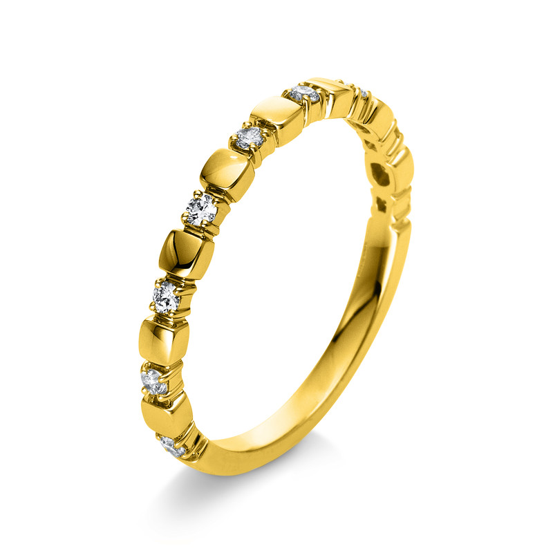 ring 18 kt YG, 9 diamonds 0,14 ct, G-si, w:2,2 mm, width:54