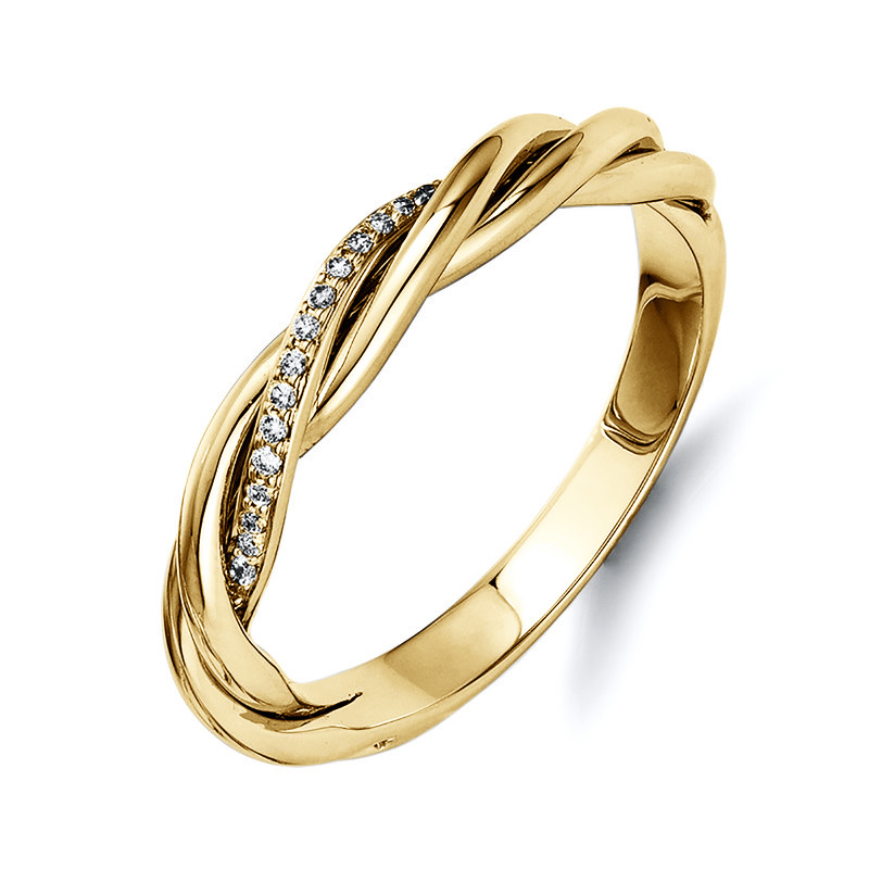 ring 18 kt YG, 17 diamonds 0,07 ct, H-si, w:3,3 mm, width:54