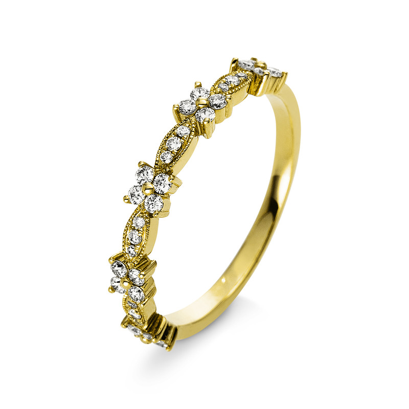 ring 18 kt YG, 32 diamonds 0,26 ct, G-si, width:54