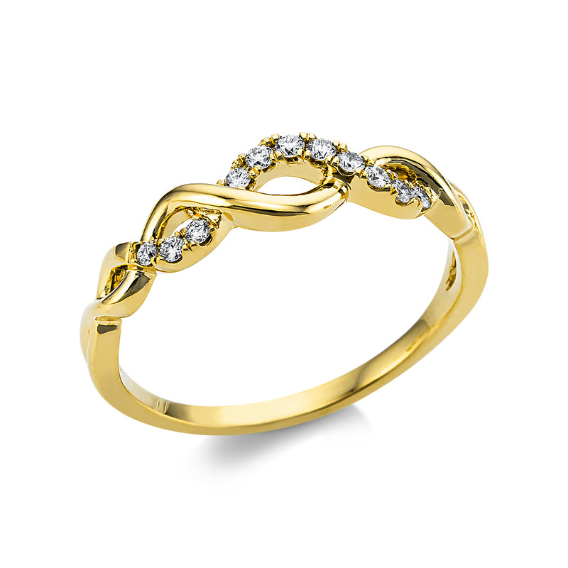 ring 18 kt YG, 11 diamonds 0,12 ct, G-si, w:4,9 mm, width:54