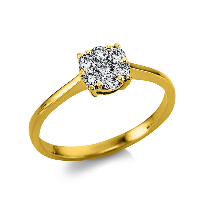 ring 18 kt YG, 6 diamonds 0,26 ct, G-vsi, 1 diamond 0,07 ct, G-vsi, width:52,50