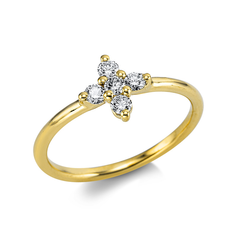ring 18 kt YG, 5 diamonds 0,25 ct, G-si, h:8,2 mm, width:54