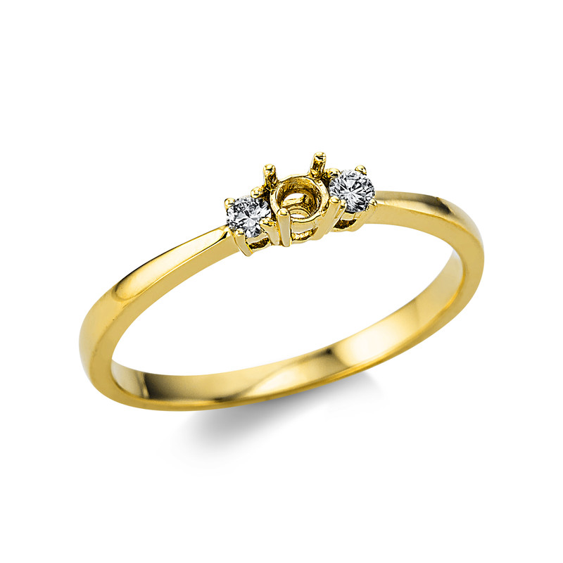 ring 18 kt YG, 2 diamonds 0,08 ct, G, mounting for 1x diamond 0,10 ct, width:54