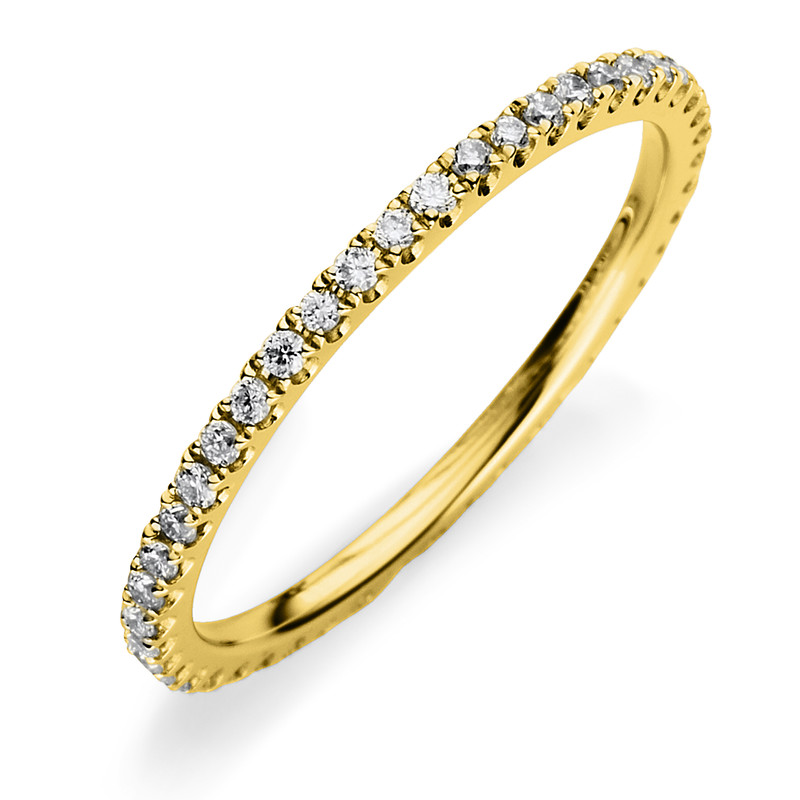 ring 18 kt YG, 45 diamonds 0,37 ct, G-vsi/si, w:1,4 mm, width:52