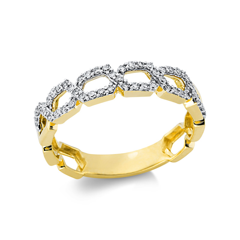 ring 18 kt YG+WG, 50 diamonds 0,23 ct, G-si, w:4,2 mm, width:54