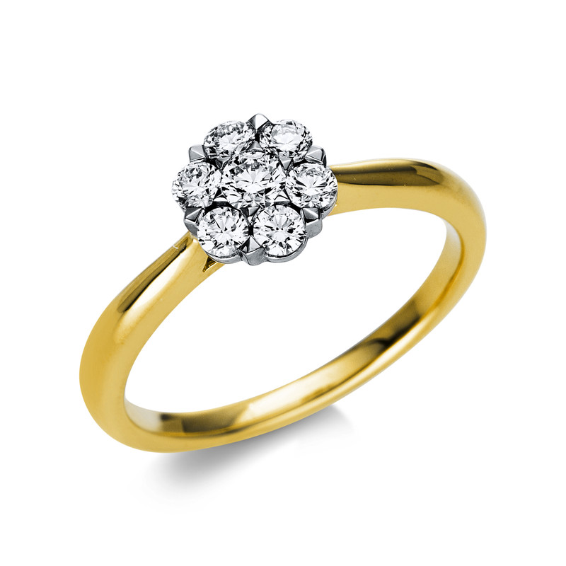 ring 18 kt YG+WG, 7 diamonds 0,40 ct, G-si, Ø:7,4 mm, width:54