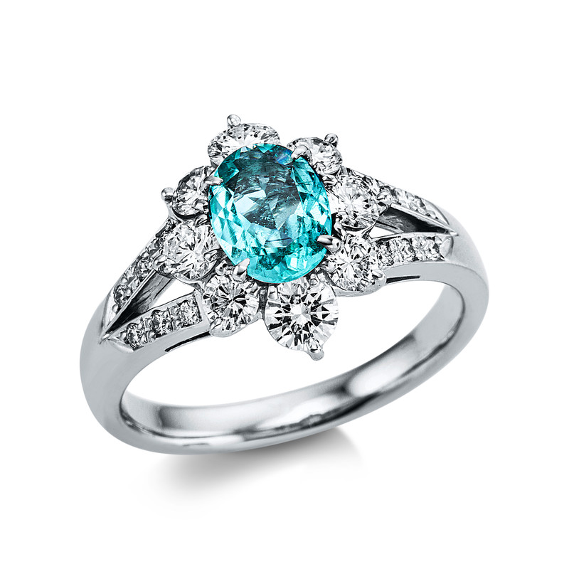 ring 900 Pt Platinum, diamond 0,96 ct, G-si, 1 paraiba 0,84 ct paraiba, width:54
