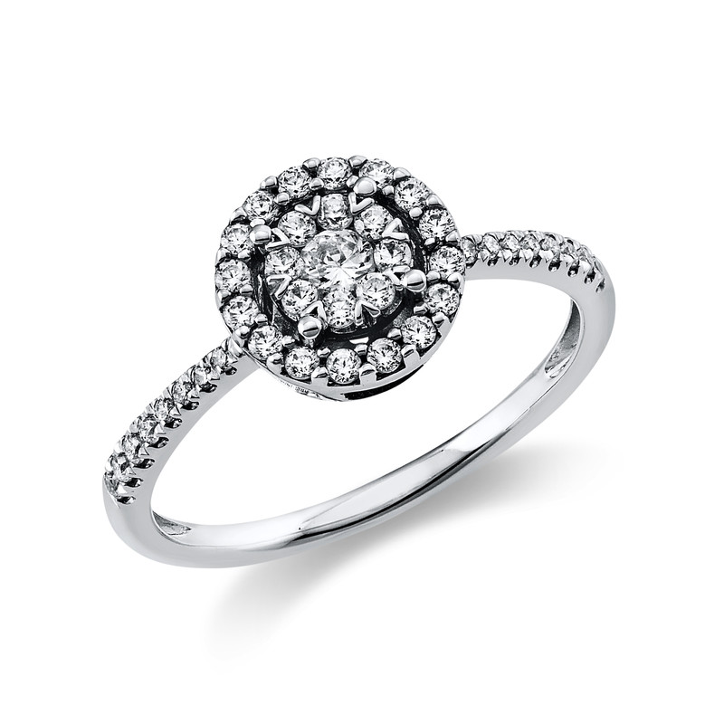 ring 950 Pt Platinum, 1 diamond 0,08 ct, G-si, 40 diamonds 0,30 ct, G-si, Ø:8,0 mm, width:54